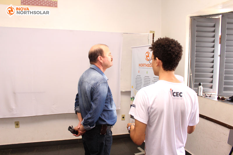 A Inova Northsolar apresentou a palestra educativa e informativa sobre os benefícios da Energia Solar para os alunos do colégio CEC Diocesano em Janaúba/MG. Mostrado a importância de utilizar a energia solar, desde simples atividades (como carregar um celular, por exemplo), até a geração em alta escala para consumo industrial. No final do evento, os alunos participaram de um sorteio na qual o ganhador levaria um brinde da Inova Northsolar: um refletor solar. Foi mais um evento muito produtivo para a comunidade escolar na cidade de Janaúba/MG. Energia Solar em Janaúba.